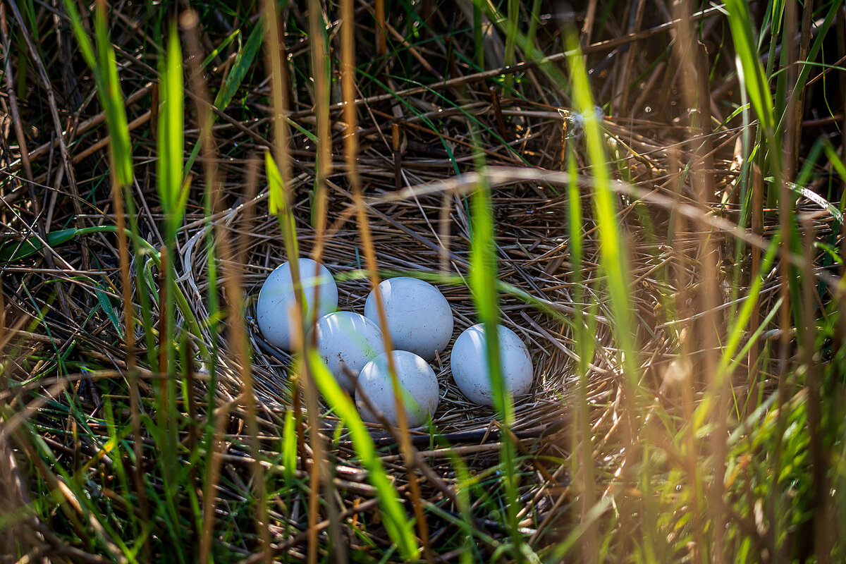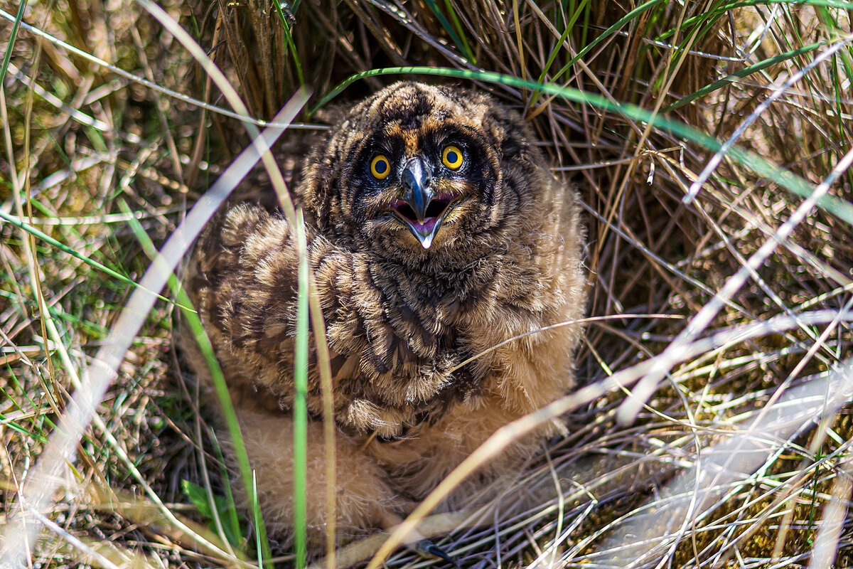 Место для гнезда выбирает будущая мать, ей же его и строить. Сначала «Букля» вытаптывает углубление в земле. Примерно в полметра диаметром. Затем она собирает ветки и траву. Всё это пернатая аккуратно складывает в углубление, а перину для детворы делает из собственного пуха. Маскировку под ничем не примечательную ямку невозможно заметить ни с земли, ни с высоты птичьего полёта. И этим родовым имением болотная сова станет пользоваться ежегодно.