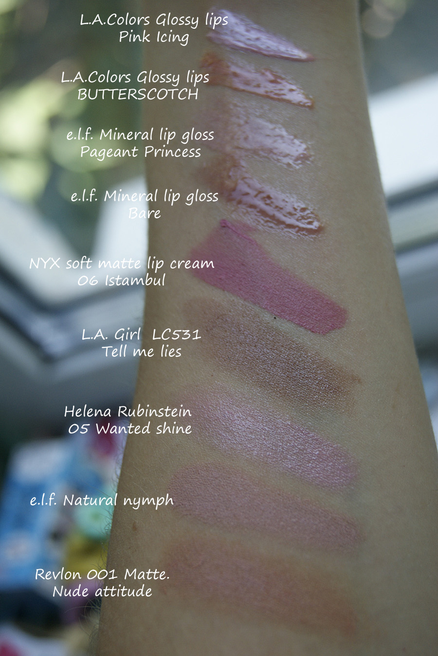 Так же вот сделала свотчи помад и блесков:)