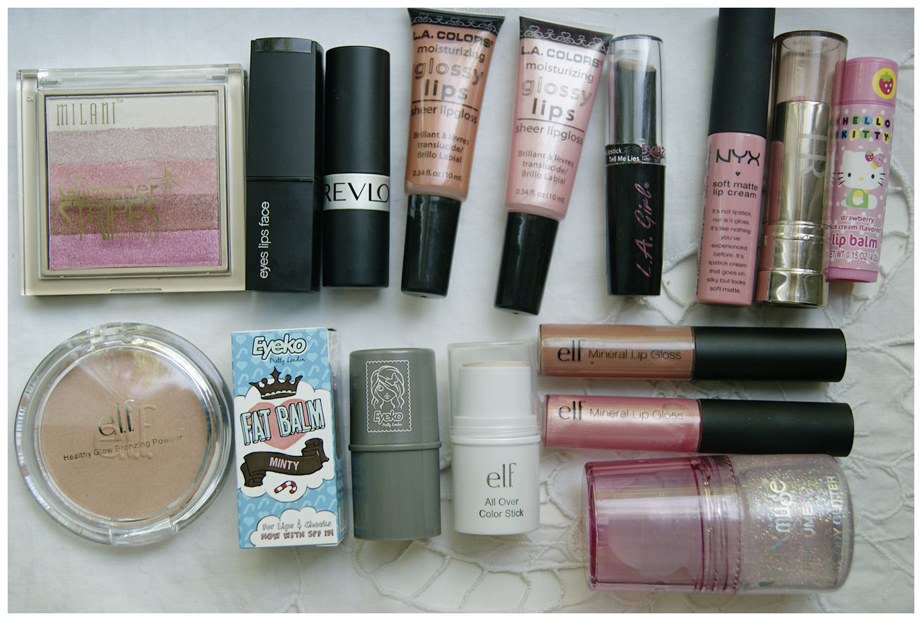 Помады, блестки, два стика для лица, румяна:)