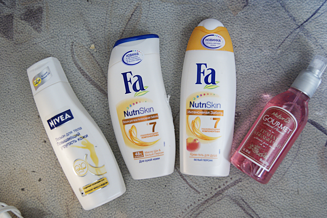 Вчера взяла лосьон для тела Nivea Q10 для придания кожи упругости. И почитала сразу же в инете отзывы. Что-то хороших мало( Еще купила гель для душа и лосьон для тела Fa, просто смягчающие. С запахом персика)