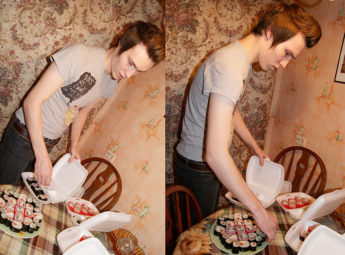 Ну и в общем, мы с Валерой засели у меня. Заказали суши :D Уже традиция прям какая-то)