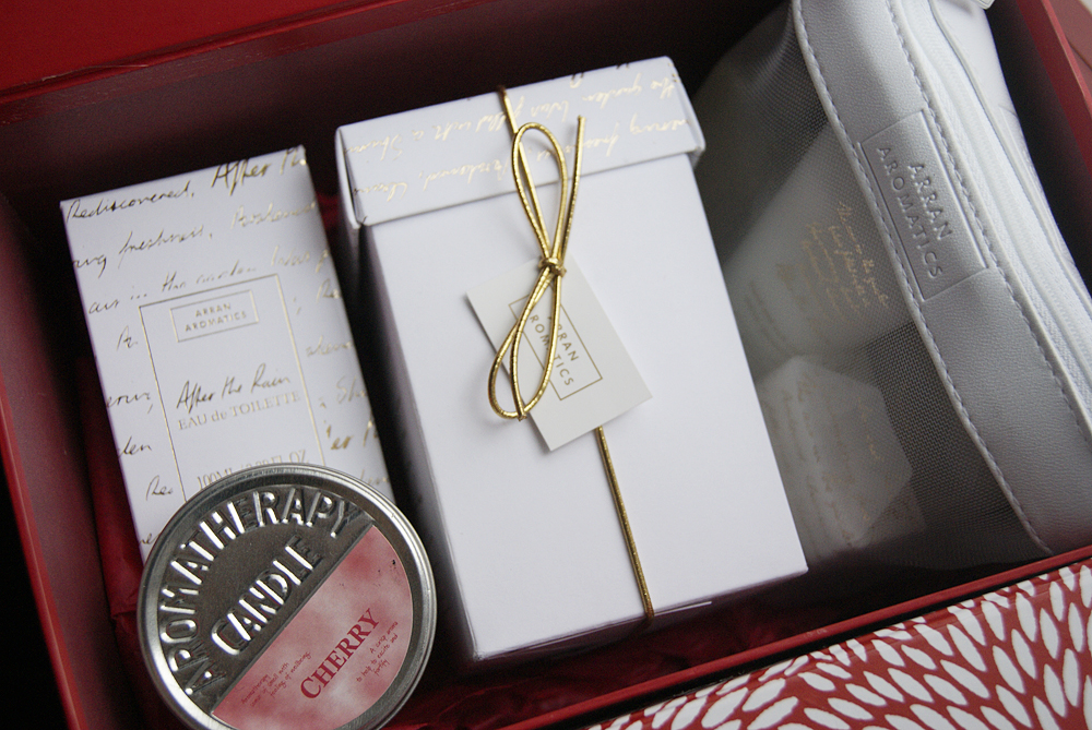 Там соль для ванны, духи, гель для душа, свечка, гель с блестками,лосьон для тела и мыло) Коробка получилась очень увесистой :D