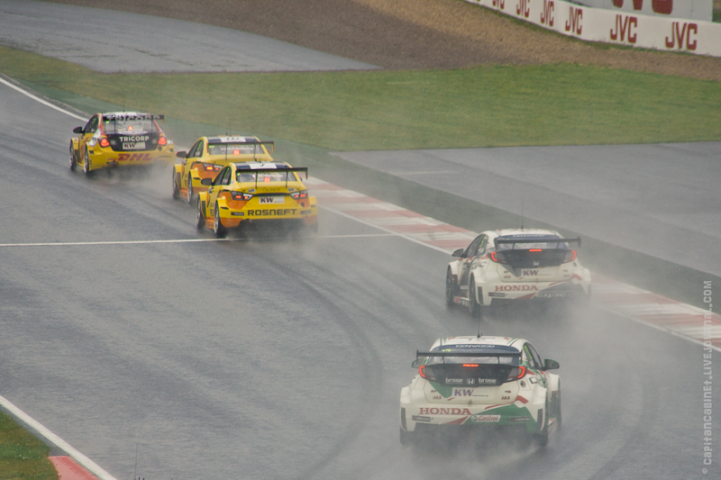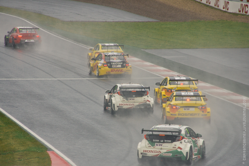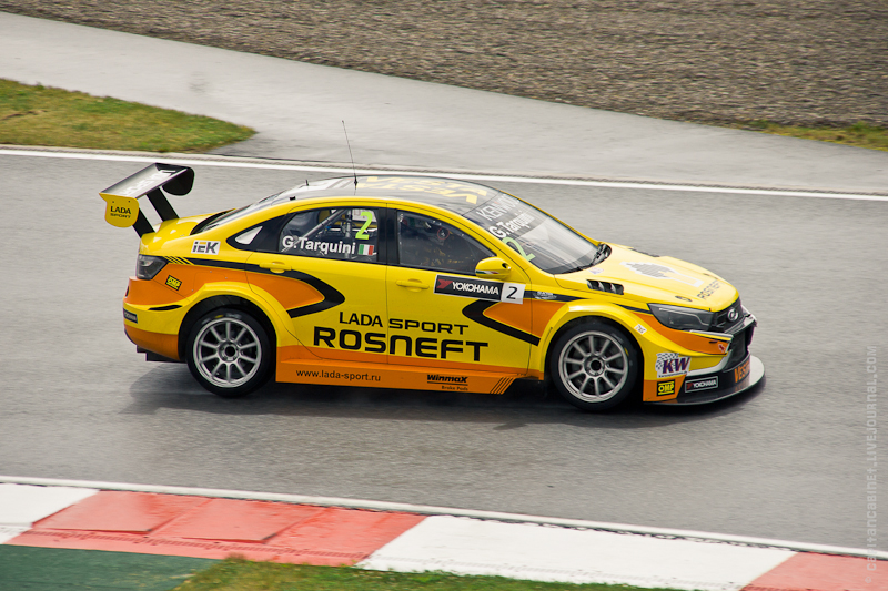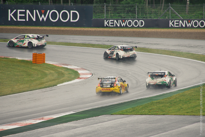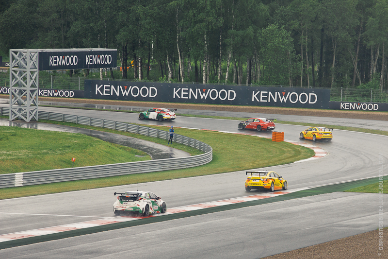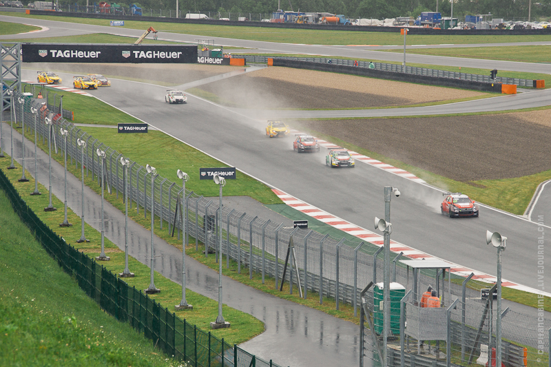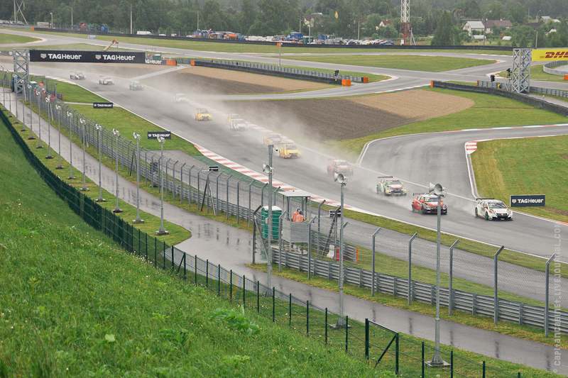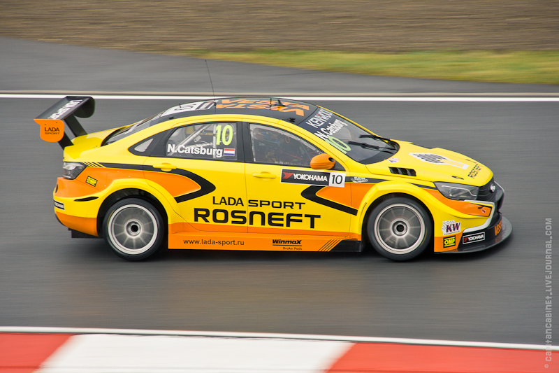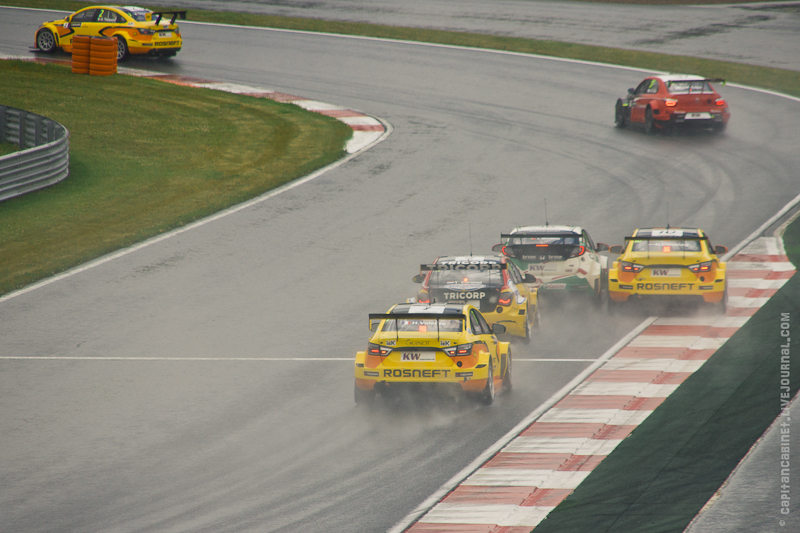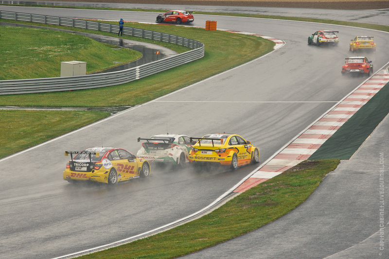 Так или иначе, старта мы дождались. Эта гонка запомнилась именно всеми возможными погодными условиями. И ветер, и дождь, и просто мокрый асфальт с ветром, и солнце, и уже сухая трасса! Эта гонка закончилась для LADA Sport победным дублем - Габриэле Тарквини и Ники Катсбург. Вот это да, и это на домашней трассе, перед своими болельщиками. И даже несмотря на то, что пришлось бороться с погодой, удалось немного поснимать :D. А дождь, как назло был вертикальный, и ветер дул со стороны трассы. Камеру постоянно заливало, моя бленда не спасала!