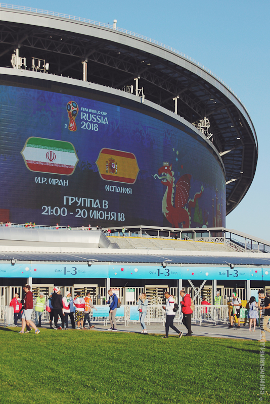 Не знаю как в других городах, здесь организацию я хвалил. До стадиона добрался быстро на такси. Часть улиц перекрыта, но подъехали близко. Дальше на широких дорогах всем хватает места. Входов и выходов на арену много. Очень грамотно рассеивается поток. Без очередей зашли на сектор и затем, вышли. Досмотр минимальный, в основном проверяют, что написано на шарфах и флагах. Билеты и паспорта болельщиков не проверяли по документам. Такое было только однажды, при посадке на поезд Фифа.