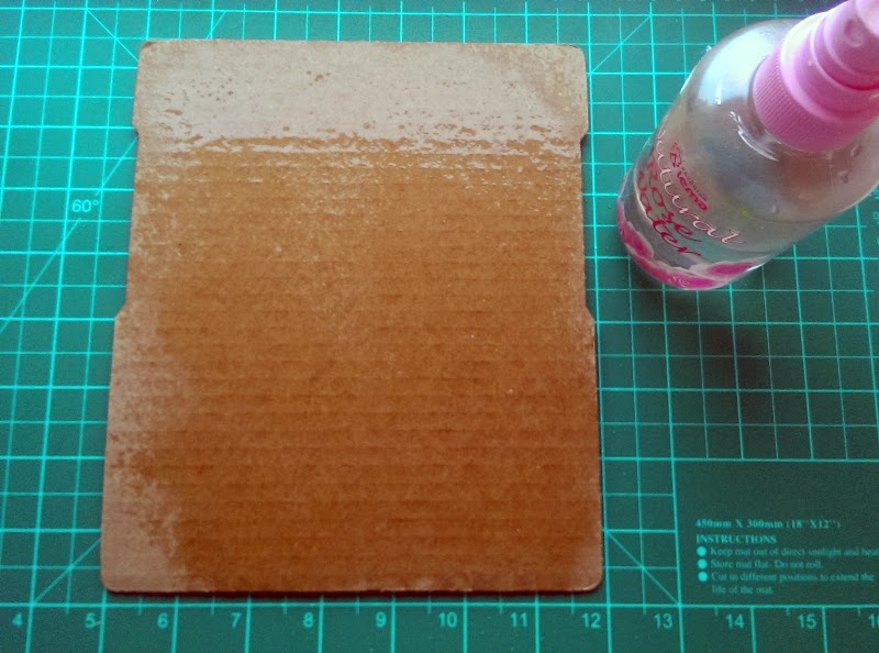 Лист гофрокартона (а это был вкладыш в коробку с посудой) я предварительно смочила водой из пульверизатора: