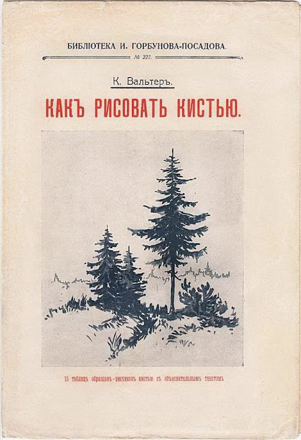 "Как рисовать кистью" 15 таблиц образцов-рисунков с объяснительным текстом. К. Вальтер. Библиотека для детей И. Горбунова-Посадова. Москва 1911 год.