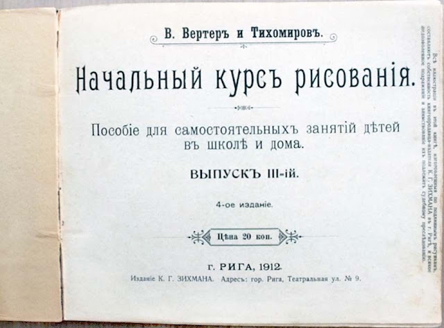"Начальный курс рисования". Пособие для самостоятельных занятий детей в школе и дома. Выпуск III-й. Вертер В. и Тихомиров. 4-е издание. Издание К. Зихмана, Рига 1912 год.