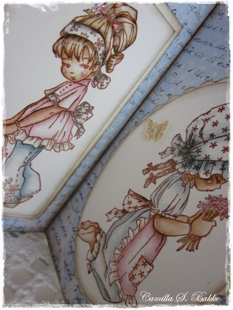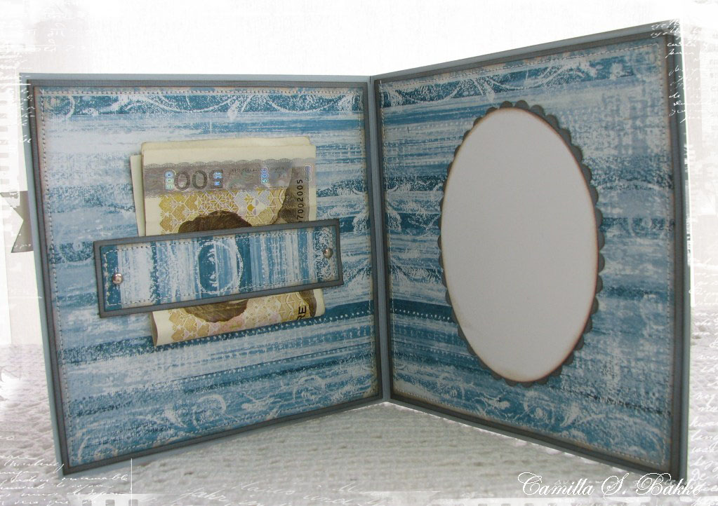 And I also measured up some more patteren paper (30x15 cm) to have inside the card. И я также измеряли что-то более patteren бумаги (30x15 см) две сад внутри карты. It is a bit easier than making four parts (something you also can do, of course). Это немного легче, чем сделать четыре партии (что-то и ты можешь, конечно). I folded the pattern paper like the bazzill, and then fasten it with glue to the bazzill. Я сложил бумаги картины как Bazzill, и просто закрепить его с помощью клея два Bazzill.
