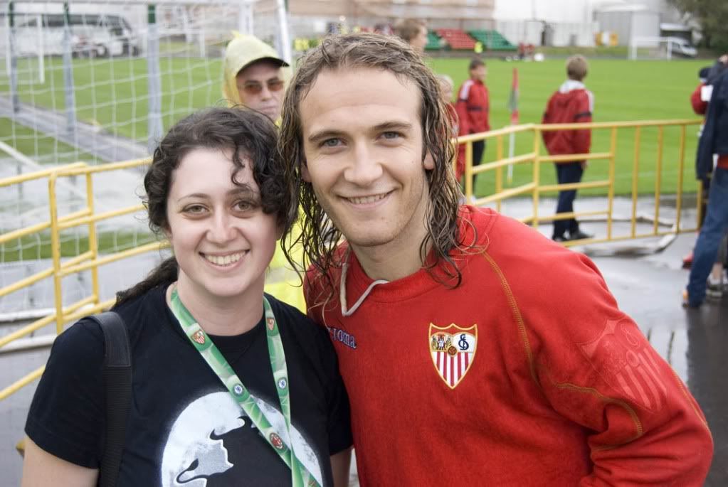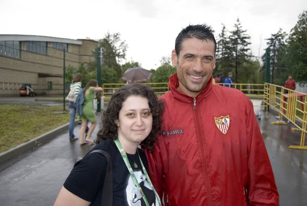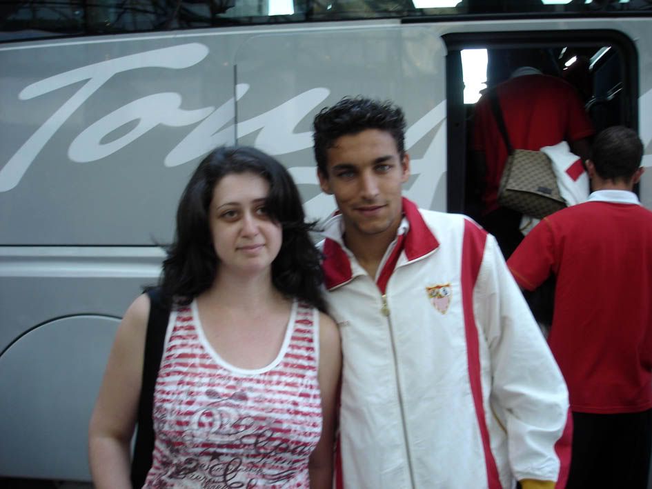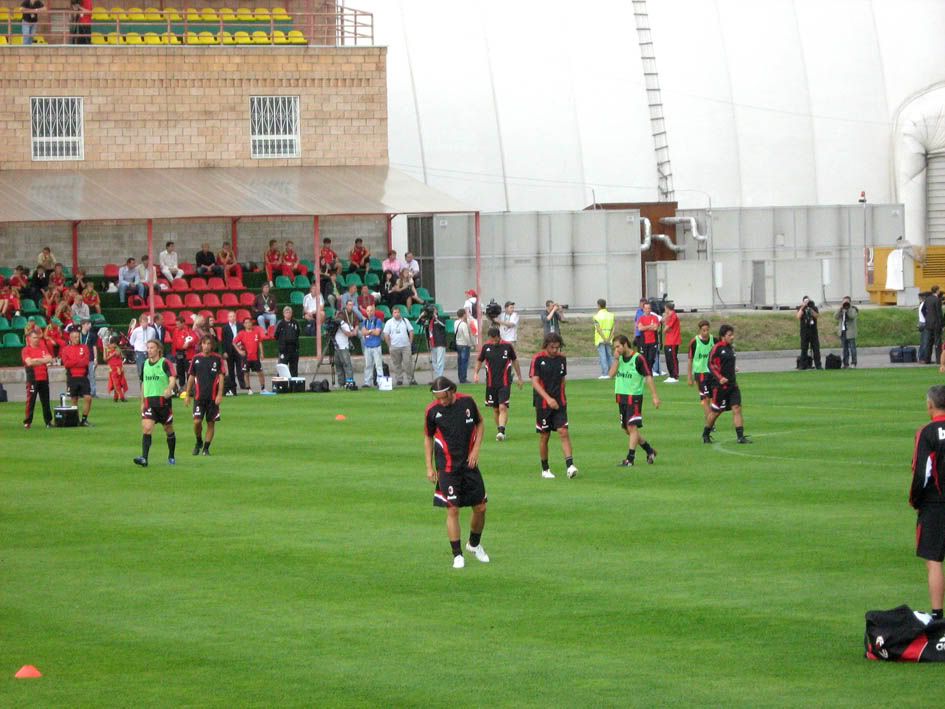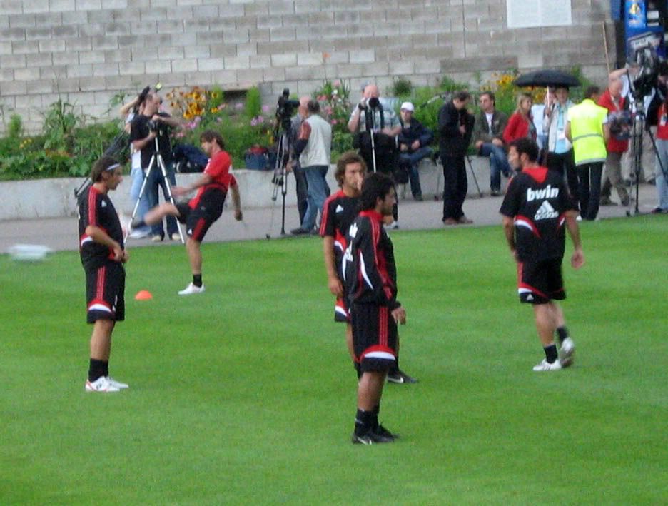 Встретившись с ними за стадионом, еще довольно долго стояли там и мокли, выясняя, будет ли вообще тренировка Севильи или нет. Дождались даже, когда миланцы выехали со стадиона. Очень забавно в автобусе сидел папа Карло. Он закинул ноги на спинку переднего сиденья и совершенно развалился в своем кресле:) Андреа с предпоследнего сидения взирал очень тоскливым взглядом на нашу промокшую до нитки троицу.