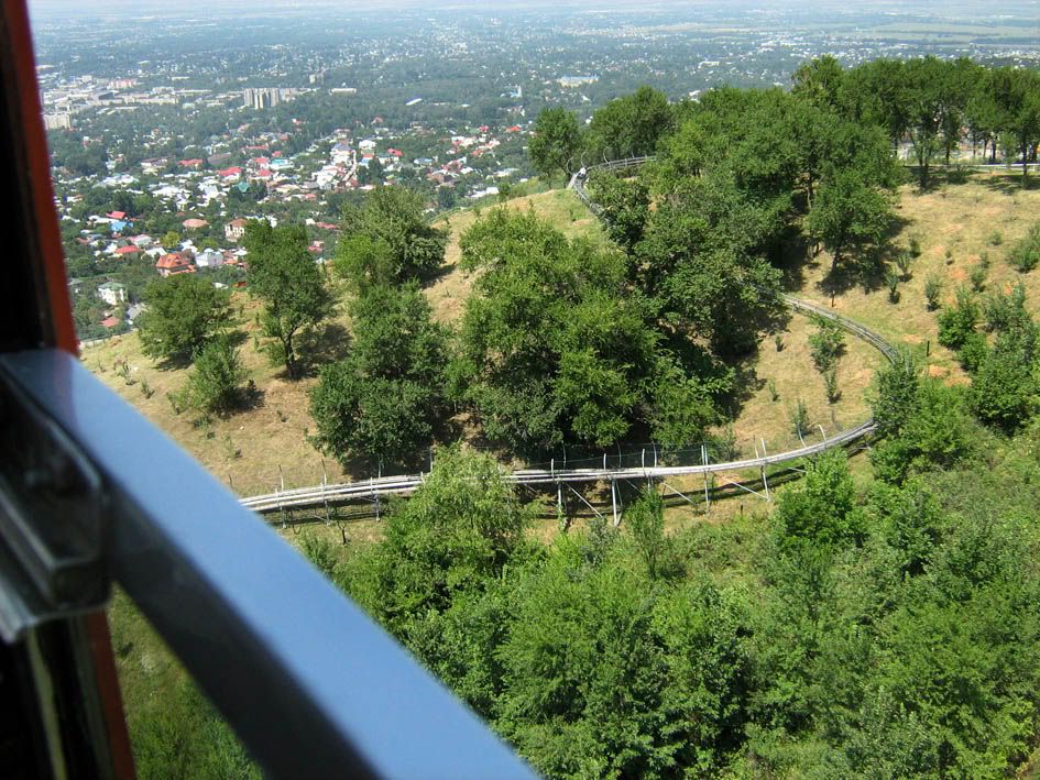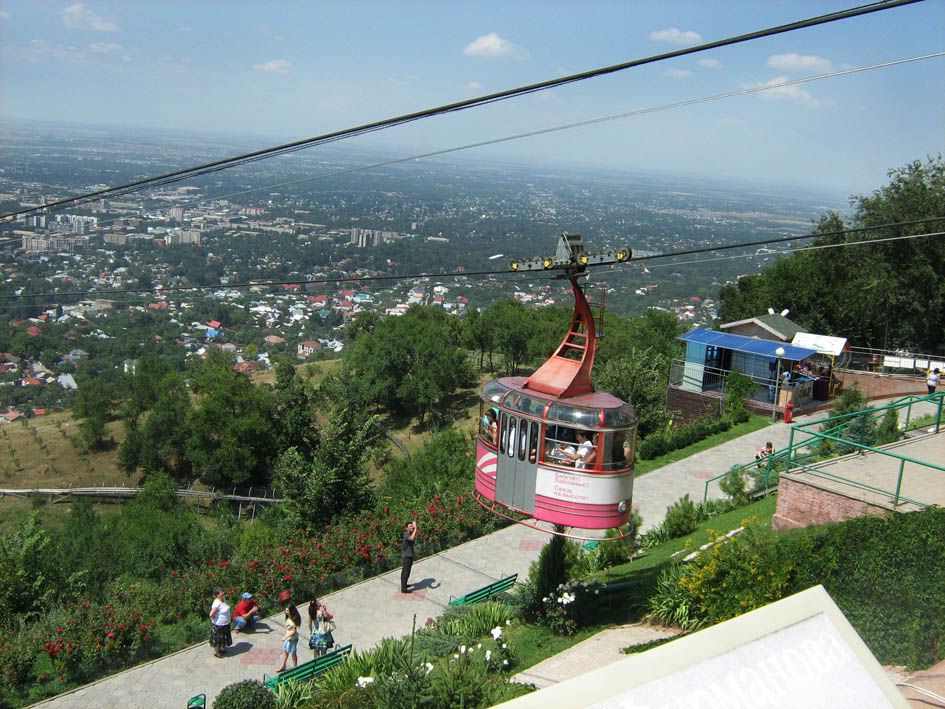 Мне уже очень давно хотелось попасть на Кок Тобе - это такая зона отдыха в горах. Ехать туда на фуникулере, на котором я ни в жизть не каталась и очень хотела попробовать. Правда, добирались мы до этого фуникулера не без приключений. Опять же, по карте все было куда проще, а на деле оказалось, что кусок дороги ремонтируют, и все идет в объезд. В общем, опять же пришлось тащиться на своих двоих, которые уже изрядно подустали. И все-таки мы туда добрались! Блин, какие же там виииды! Никакой фотик не в состоянии передать эту красотищу. И на канатке оказалось оооочень круто кататься! Еще хочу!