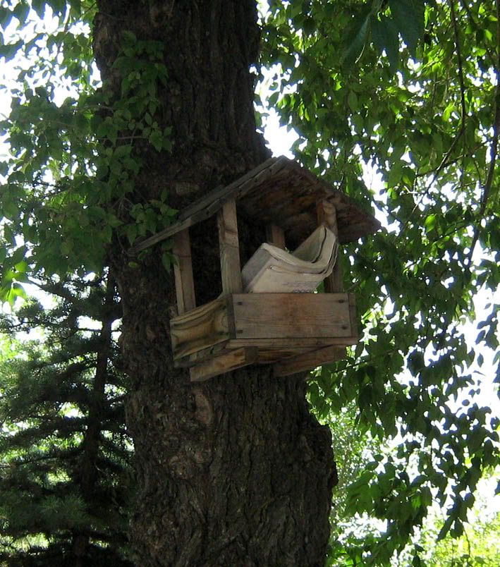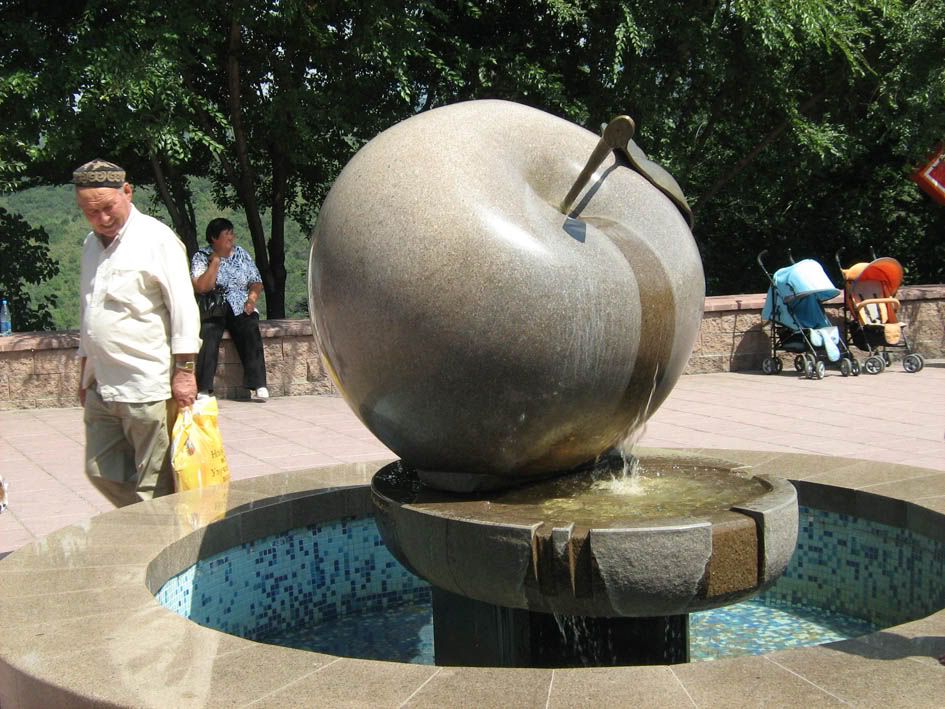 Ну и еще там есть вот такое яблоко, как символ города. Ведь Алма-ата переводится, как Отец яблок. Симпатишное облачко, и образованные птички, которым в скворчечник приносят газетки почтитать :)