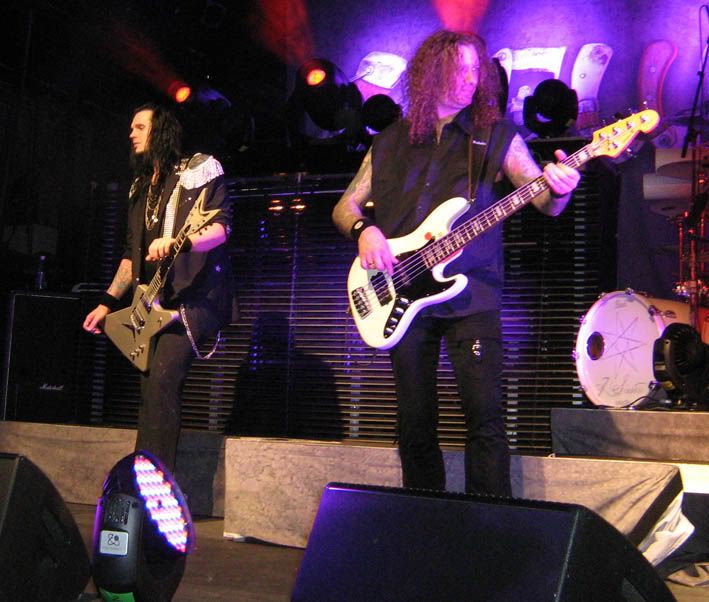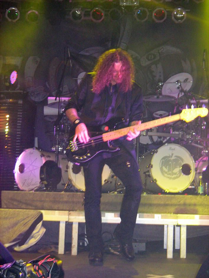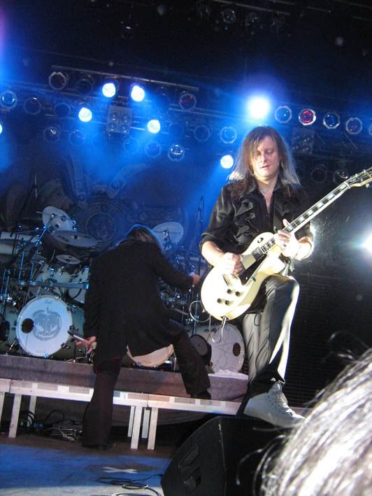 А вот на "I'm alive" снова пришлось прятаться от Энди и любоваться на этот раз на Маркуса :) Хотя, на него невозможно было не любоваться с самого начала концерта! Ну, во-первых, это басист! А басист не может не привлечь мое внимание по определению :) Во-вторых, это ужасно обаятельный басист. Он, как только выскочил на сцену, тут же стал строить глазки всем подряд девушкам в ближайшем обозрении. Мы, поскольку маячили перед самым носом, не были обделены вниманием, и постоянно перемигивались с Маркусом, а он корчил нам смешные рожицы и улыбался самыми радостными улыбочками :) Сплошной позитив! И если бы я уже не была влюблена в Лаури, Тимо и Сашу, непременно влюбилась бы в Маркуса! Обалденный он! Кстати, разглядывая фотографии, заметила, что у него как минимум две басухи, одна четырех, а другая пятиструнная. Крутой, блин!