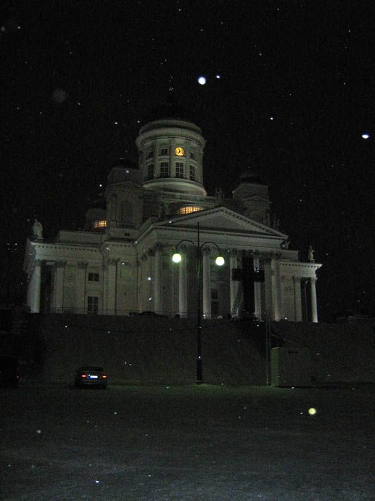 Погодка в этот день не особо способствовала  длительным прогулкам. Не то, чтобы был сильный мороз, но вот леденящий ветер реально до души пробирал! А в ночи пошел такой красивый и густой снег, просто заглядение! Вернувшив в отель, мы из окна наблюдали за снегопадом и за еще одним более чем странным явлением. В шесть часов вчера, например, когда мы как раз гуляли, Хельсинки вымер буквально. А в час ночи, в такую, мягко говоря, непрогулочную погодку, по улицам шныряли толпы, вот буквально ТОЛПЫ финнов! В разных направлениях и с совершенно четкими планами! Мы с Мэйкой до сих пор теряемся в догадках, КУДА они все шли :) И где вообще проводят субботние вечера жители Хельсинки :) В следующий раз мы это обязательно выясним. А пока же, узнав, что Милан продул Роме, и не сильно расстроившись, что матч не показывали в спорт-баре, отправились мы на боковую.