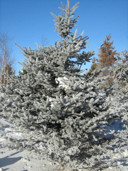 Перед Байтереком находится очень симпатичная площадь с необычными елочками. Колючки у них белые! Никогда такого не видела, полчаса таращилась на них, пытаясь понять, в чем секрет. Нет, действительно белые колючки!