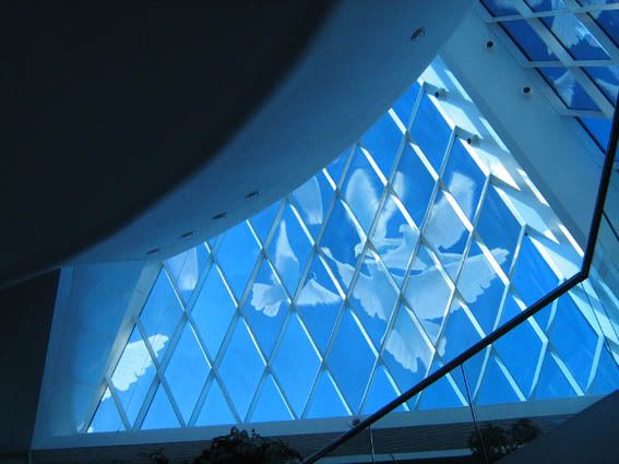 Мне повезло, автобус к Пирамиде ехал часа полтора, ибо стоит она на самой окраине города, практически в степухе. Вышла я там и уже пожалела, что вышла. Там, помимо мороза еще и ветер был нереально холодный! Совершенно окоченев, добрела до этой дурацкой Пирамиды и прошарахалась там полчаса. В ней нет, ну абсолютно ничего интересно, кроме раскрашенных голубями окошек. Голуби эти символизируют 130 с чем-то там национальностей, живущих в Казахстане в мире и согласии. Честно говоря, мне вообще было все пофиг в тот момент, все мысли только о том, чтобы открыли вокзал. Даже если поезд задержат, хоть будет где подождать, не на улице же, в самом деле. По дороге назад дошла до ручки, передумав все самые наихудшие варианты развития событий. К счастью, еще из окна автобуса увидела, что никакого оцепления нет, и люди тихо-мирно заходят в здание. Счастью моему не было предела! Все-таки, боюсь я холода очень. Было бы лето, я бы так не переживала, но провести ночь под открытым небом в тридцатиградусный мороз – это не для меня.