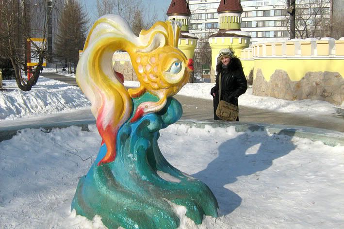 По пути из окна видела ледяные фигурки! Чуть из автобуса не выпрыгнула! Показать мне ледяные фигуры все равно, что показать папуасу снег, никогда не видела наяву, только по телевизору. К сожалению, мимо них мы проехали очень быстро.