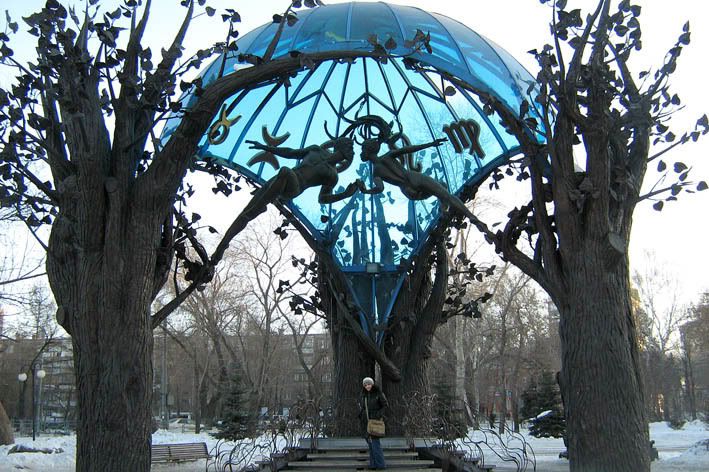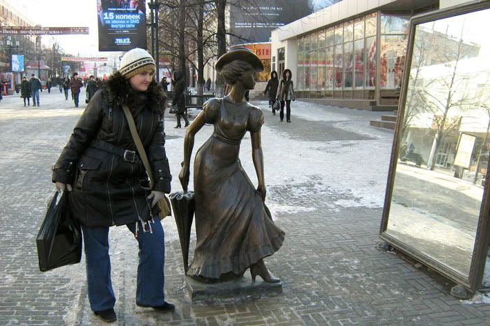 Побывали в парке имени Пушкина, позаглядывали в разные магазинчики, погуляли по Кировке – это что-то вроде Арбата. Мне очень понравились оригинальные памятники, которые там понастроены. В этот день все их посмотреть не удалось, ибо теплолюбивое растеньице, то бишь я, замерзла, хотя и было не очень холодно. Словом, пришлось нам прервать созерцание памятников и отправиться в кафе. Очень вкусные там пироженки были!