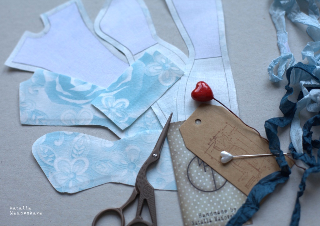 Переносим детали выкройки на ткань, вырезаем, не забывая оставлять припуски на швы. У меня припуски по всем срезам, кроме нижних - 5 мм, припуск по нижнему срезу, а также для деталей основания и верха - 1 см.