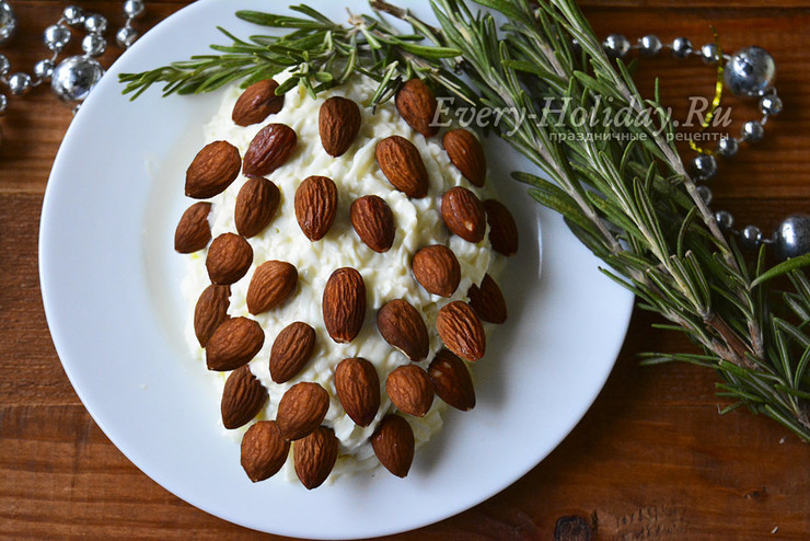 Мы думаем, что мы смогли бы удивить самого Люсьена Оливье новым салатом «Сосновая шишка c миндалем», который претендует на роль кулинарного шедевра наступающего Нового года. Как его готовить это блюдо, все тонкости его рецепта и оформления мы вам с удовольствием расскажем