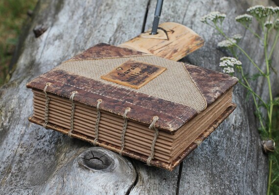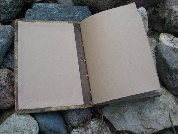 Vintage look burlap and leather journal guest book 8,7 x 6,5 with names Coptic stitch Notepad Notebook Diary Sketchbook