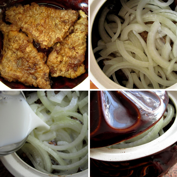 Необыкновенно вкусная и нежная печеночка запеченная в горшочках с луком и молоком! Хоть говяжья печень чаще всего попадается достаточно жесткой, но приготовленная по этому рецепту оно просто тает во рту, и это без особой подготовки и манипуляций))) Весь секрет в том, что жареная печень заливается молоком и томится в духовке в горшочках под крышкой. Вкуснейшее блюдо, которое я настоятельно рекомендую приготовить и попробовать!!! Угощайтесь!!!