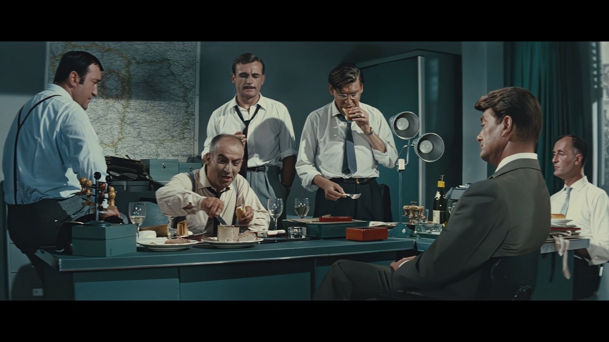 Что может быль лучше чем один Луи де Фюнес? Сразу пять Фюнесовв кадре. Сцена с толпой на улице у витрины с телевизорами сейчас воспринимается с иронией, как дань ушедшей в небытие эпохи. Витрину с теликами снимали отдельно в павильоне, где ее благополучно разнесли, причем не с первой попытки о чем свидетельствует склейка кадра. Так мы и познакомились с полицейским номер один всея Франции комиссаром Жювом.
