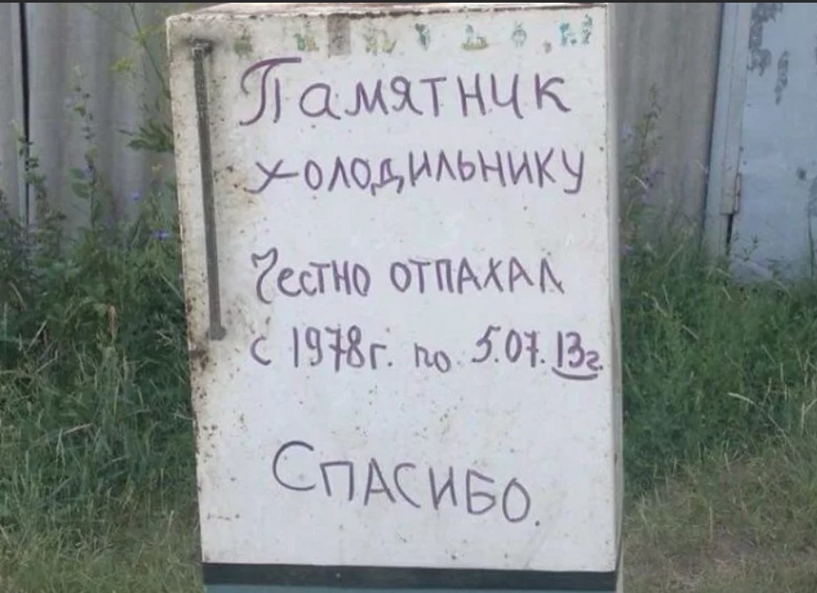Встретил в инете вот эту картинку: "Памяти холодильника". Вроде бы и шутка. А на самом деле и не шутка совсем. Ведь их, трудяг и в самом деле нужно вспомнить добрым словом. Сколько они отслужили нам верой правдой. Срок службы каждого исчислялся многими годами.