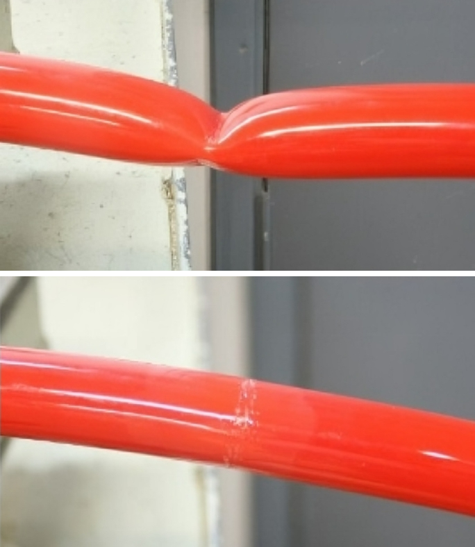 Рис. 6.1. Излом трубы VALTEC PEX-EVOH (способ сшивки – PEX-b) и ее восстановление после прогрева до 100 °С