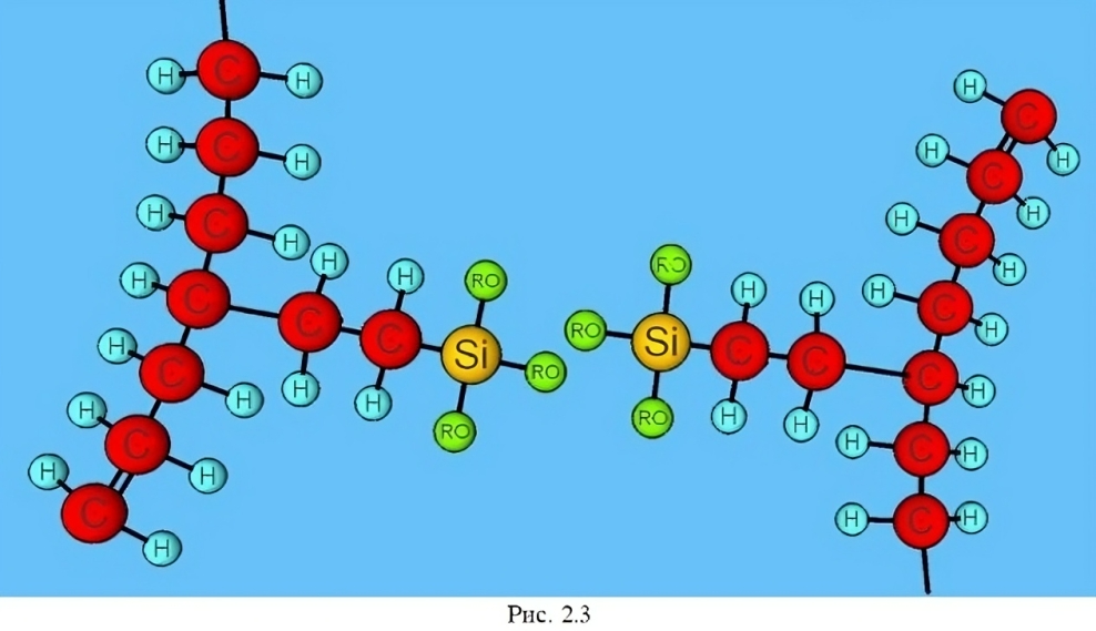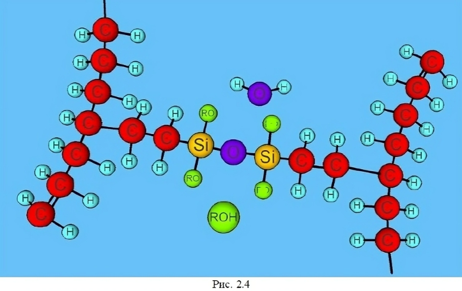 Затем полиэтилен обрабатывают водой либо водяным паром, органические радикалы при этом присоединяют молекулу водорода из воды и образуют стабильную гидроокись (органический спирт). Соседние радикалы полимера замыкаются через связь Si-O, формируя пространственную решётку (рис. 2.4).