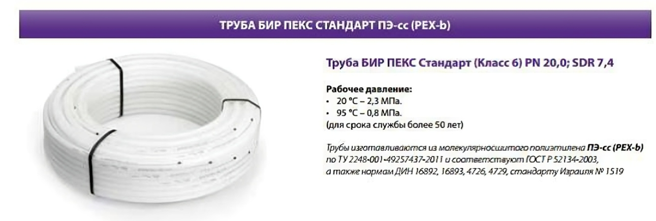 PEX-b: сшивка органическими силанидами (силанами), мин. степень сшивки по ГОСТ - 65, метод сшивки - химический.