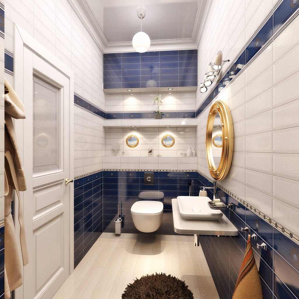 Ответ на комментарий FrInBi # О! Вот на первой мне синий нравится и на предпоследней . Скоро ты профи станешь!) А я завтра если на работе будет время - пошукаю фотки - сброшу потом тебе... У моей одной заказчицы красивая плитка в ванной - завтра спрошу у нее - какой фирмы брала - скорее всего у нее итальянцы - но не думаю что дорогие... Но цвет ! Ммммм... вкусный !) А на полу у нее панно из плитки мелкой посредине ванной комнаты прям как ковер ... Были у меня фотки ентого... Завтра найду - скину...)Но у нее не совсем морская тема - а больше к классике в современной обработке так сказать...) А я б для тебя взяла стилистику 50-х годов - помнишь , изображения американских девушек в офигительных белых матросках и юбочках с белыми носочками под парусом на яхте?) Я б в твою ванную такую картинку-постер бы забабахала - на синюю стену в белой рамке!) Вот и девочковой сразу станет ) Вот мне нравится первая фотка - только не перебарщивать - более лаконично - сейчас и сантехника красивая лаконичная есть... Ну как-то так !) Главное - не переборщить - чтобы не в лоб все - а намеком)