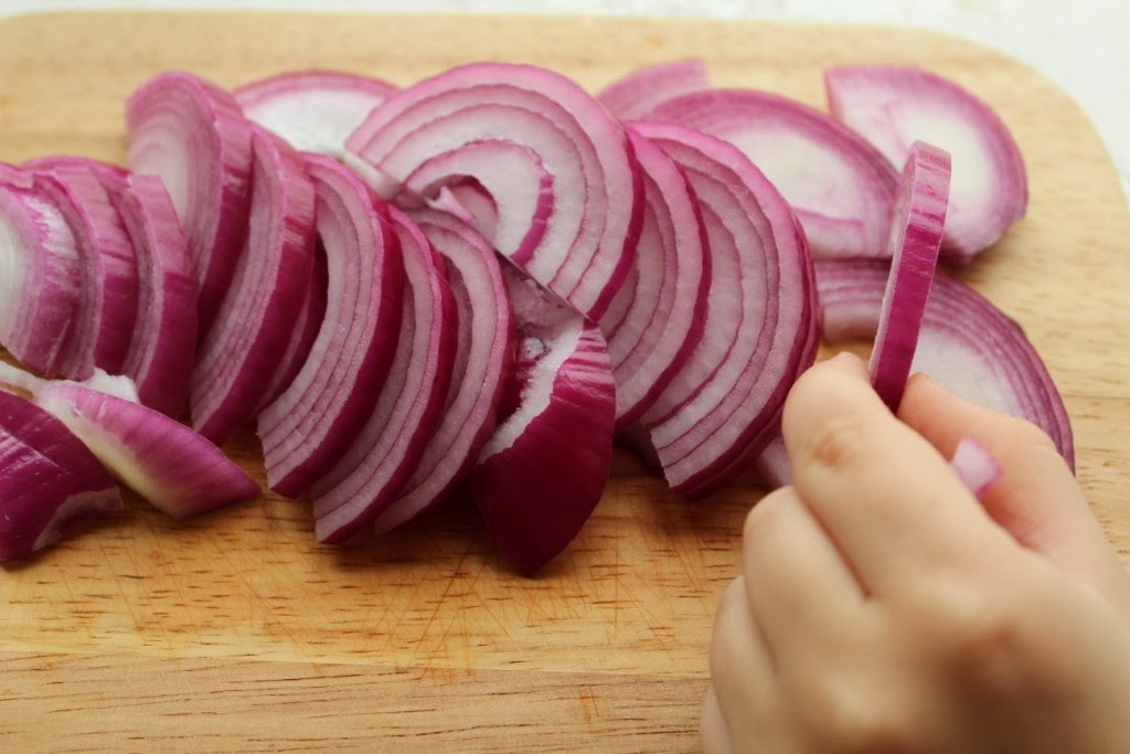 Лук нарезать полукольцами.