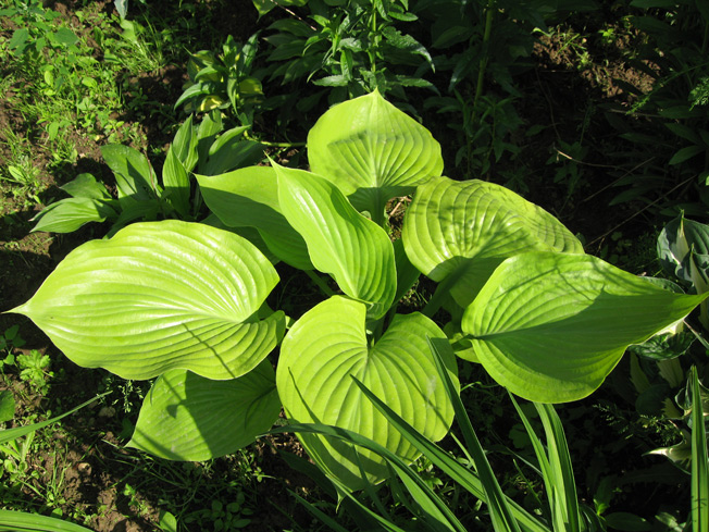 Хосты удачно сочетаются с ранневесенними луковичными растениями - крокусами, хионодоксой, пролеской. Пока хоста находится в состоянии покоя, мелколуковичные цветут. Летом листья хосты притеняют почву, и покоящиеся луковицы не страдают от перегрева.
