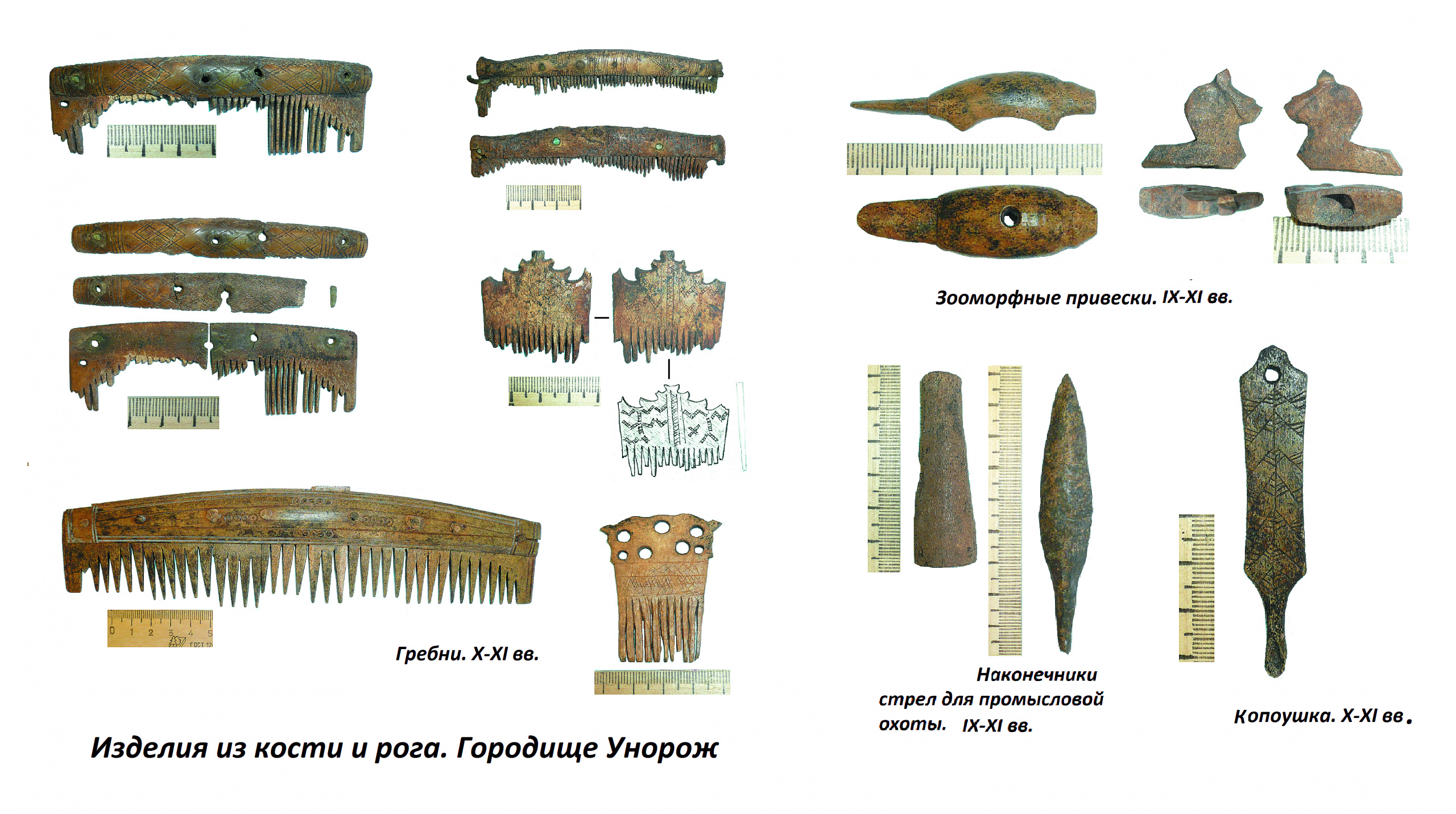 Попытки подражания и воспроизведения этих предметов видны на примере изготовления гребней из лосиного рога, в основе имеющие образцы из Прикамья. Унорож – главный центр ювелирного промысла на территории Костромского Поволжья в эпоху раннего Средневековья. В результате торговли металлические украшения распространялись далеко за его пределы.