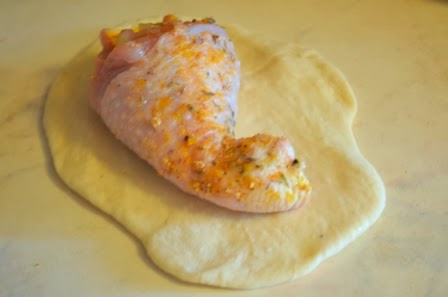Каждую часть раскатать в овальную лепешку и выложить на нее ножку. Защипнуть как пирожок. Все швы слепить как следует. [400x265]