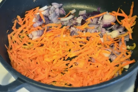 Пока тесто стоит делаем фарш: обжарить на растительном масле лук с морковкой. Лук при этом надо как можно мельче нарубить, а морковь натереть на крупной терке. [400x265]