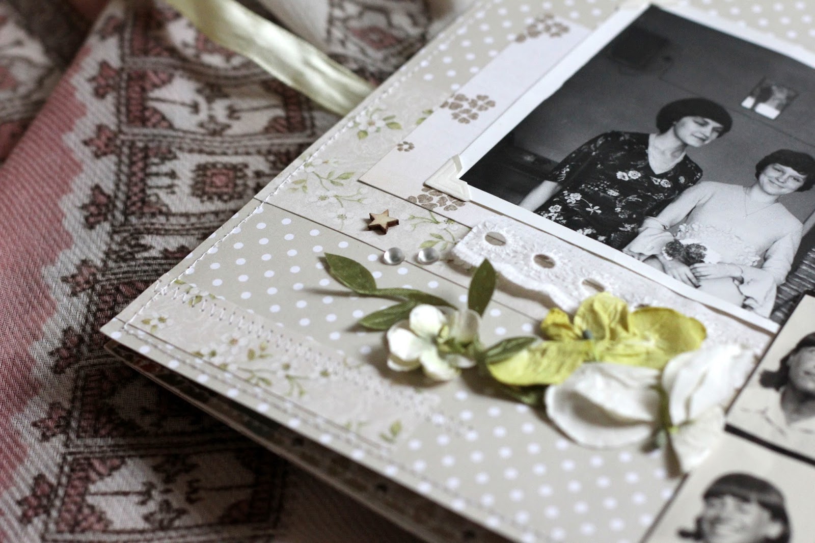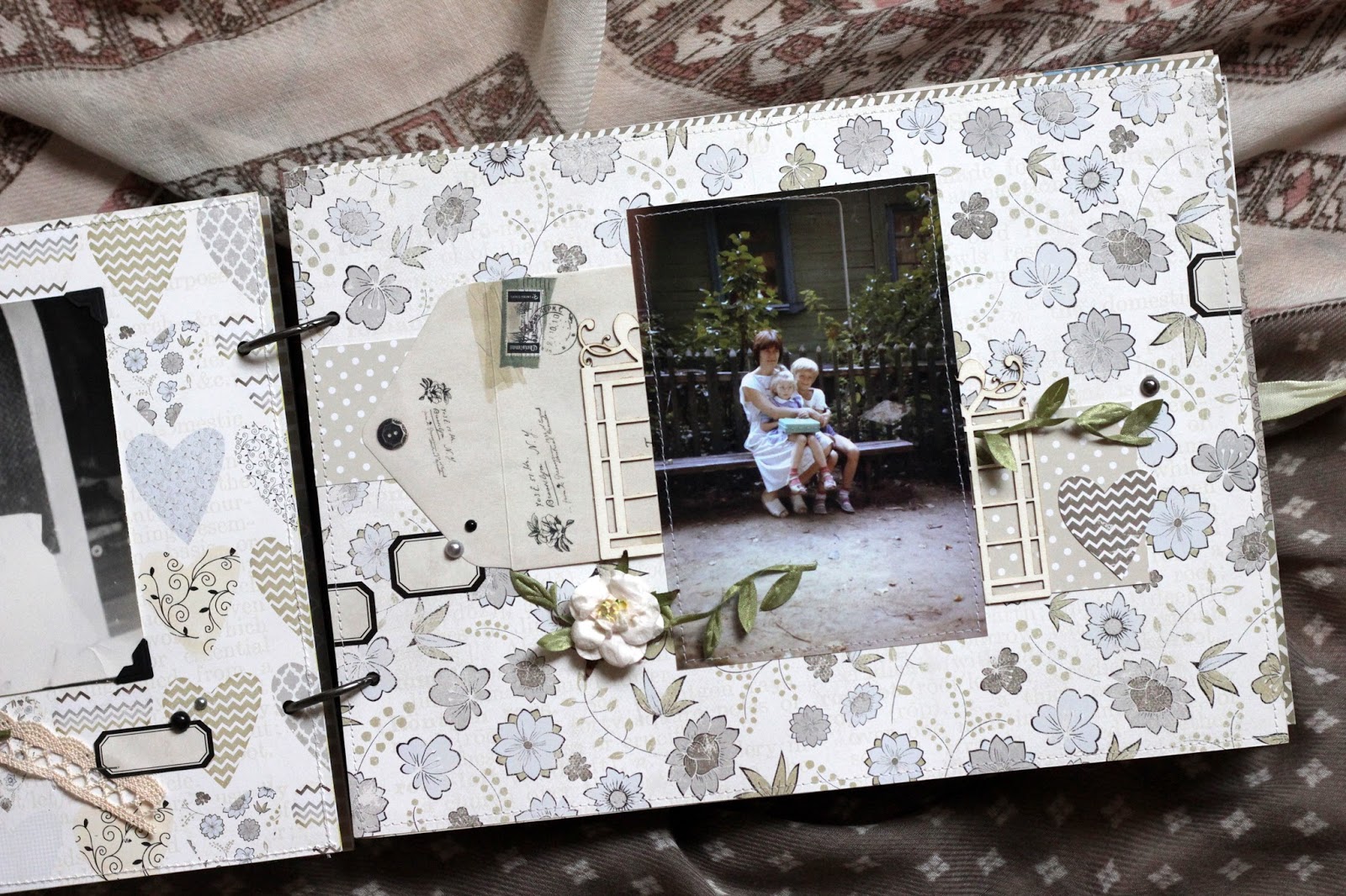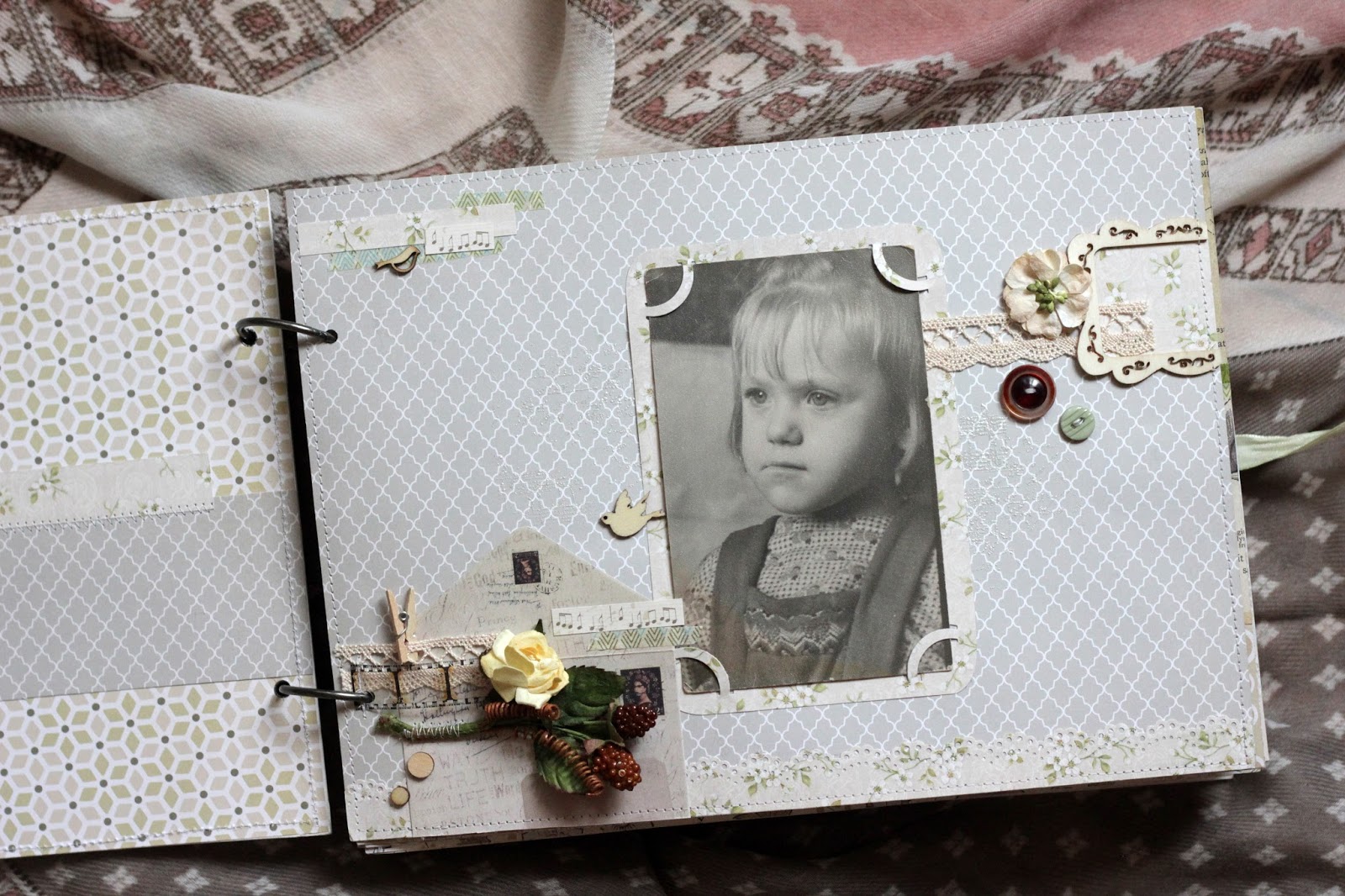 Альбом, от которого я сама в тихом восторге :) До чего же в нем красивые, пропитанные временем фотографии. Черно-белые картинки оживали на страничках и очень гармонировали с подобранной нами (вместе с заказчицей) бумагой.
