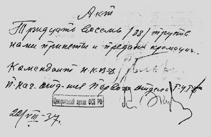 В 1991 году на допросе в Генеральной Военной прокуратуре СССР один из членов этой расстрельной команды, бывший начальник УНКВД по Калининской области Токарев рассказывал: