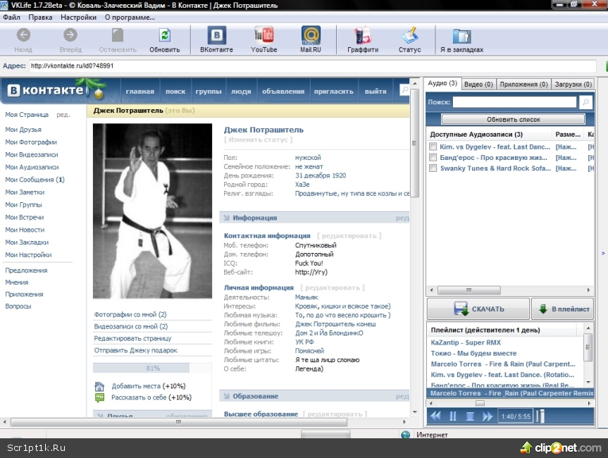 По словам автора, она является универсальным инструментом для скачивания музыки, видео и приложений с сайтов Вконтакте, YouTube и Mail.ru.