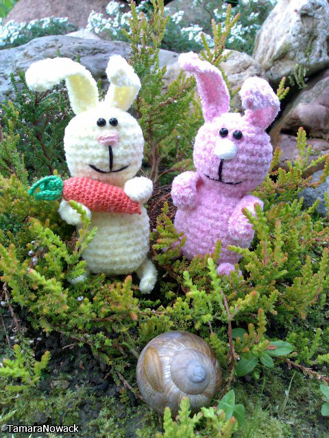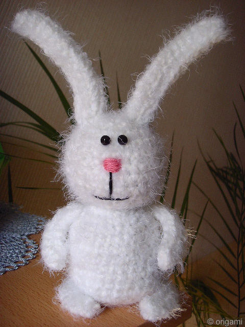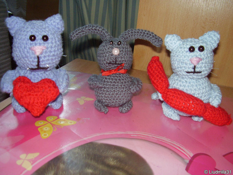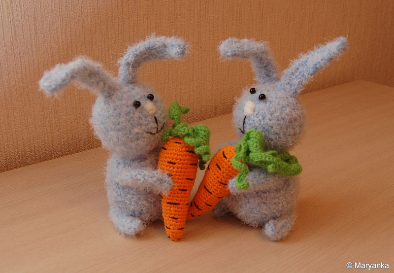 Я не смогла удержаться и решила связать для себя таких зайчиков, но не спицами, как в оригинале, а крючком.