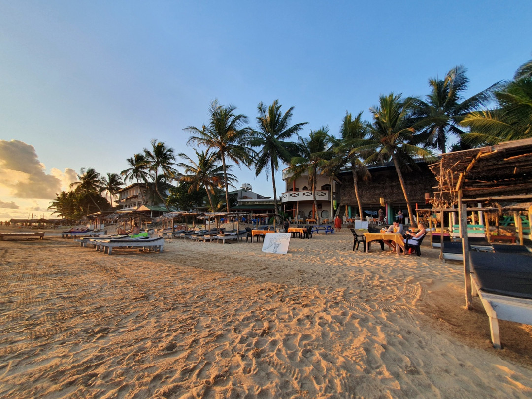 На первой линии расположен один из самых популярных и комфортабельных местных отелей — Akurala Beach Park, территория которого украшена роскошным садом.