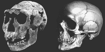 Черепы питекантропа и современного человека