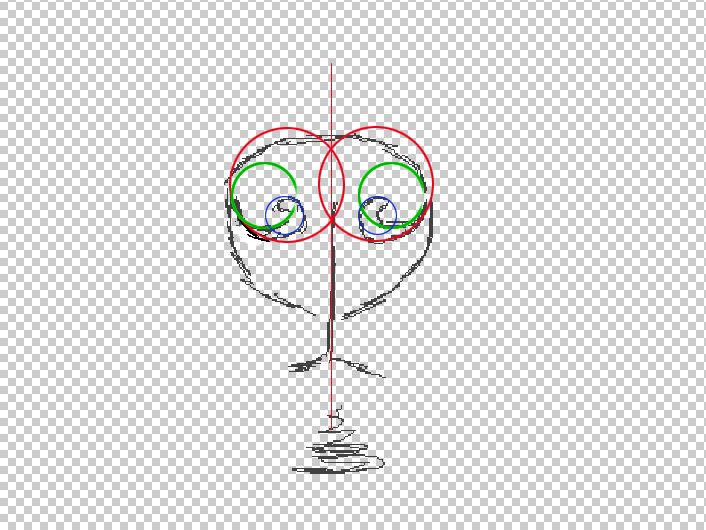 Итак, два больших красных круга, это нижнее окружье ноздрей, зеленые- это граница самих ноздрей,которые уходят в глубь носовых ходов, и как крылья,облегают нос собаки по бокам. Синие круги это верхние окружья ноздрей.