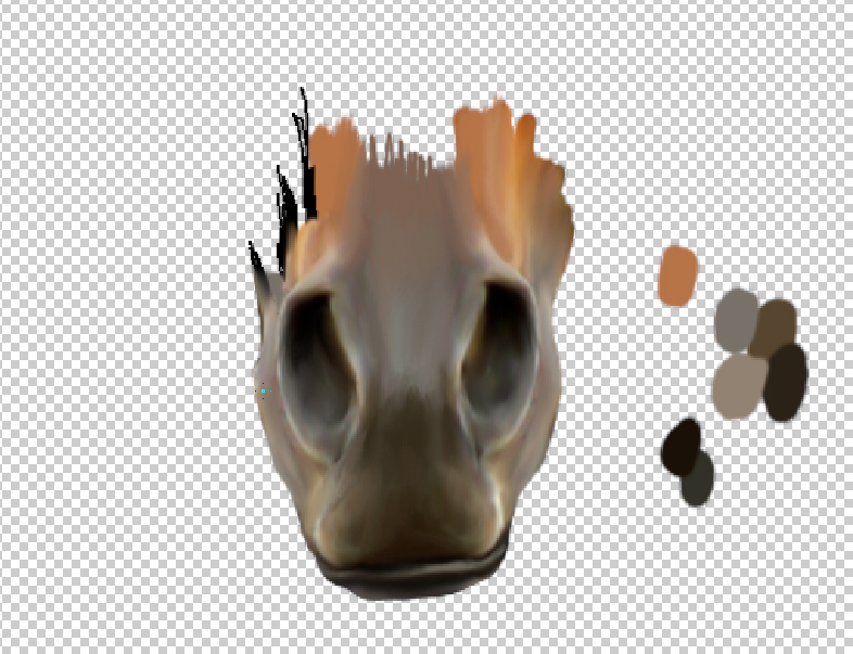 Вот такой нос у нас получился. Если ваша лошадь на картине стоит вдалеке, то по идее, на этом можно и остановиться. Но если вы задумали крупный план,то необходимо текстурировать кожу губ.