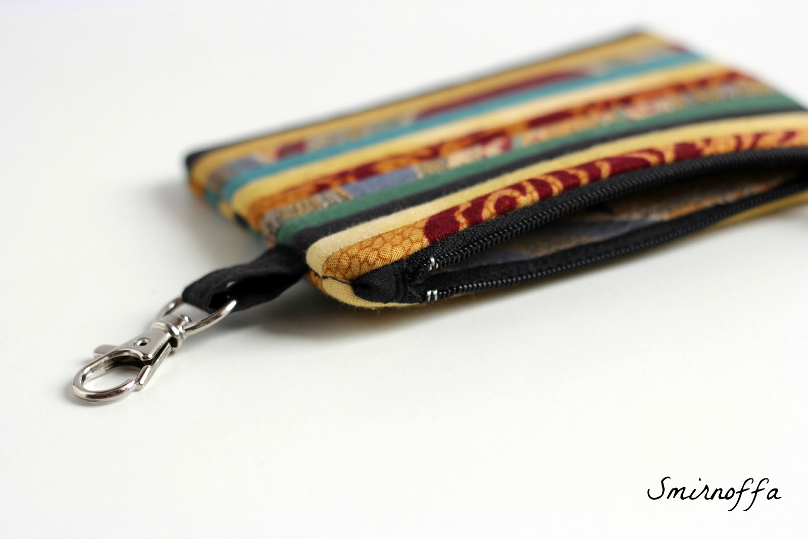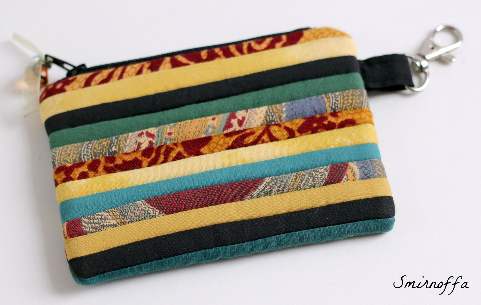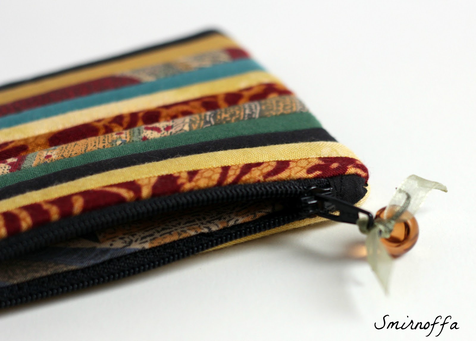 Так мне понравилась эта гамма, что не смогла просто так остатки тканей убрать и сшила еще и косметичку, и небольшой футляр (можно для ключей, можно для помад...)