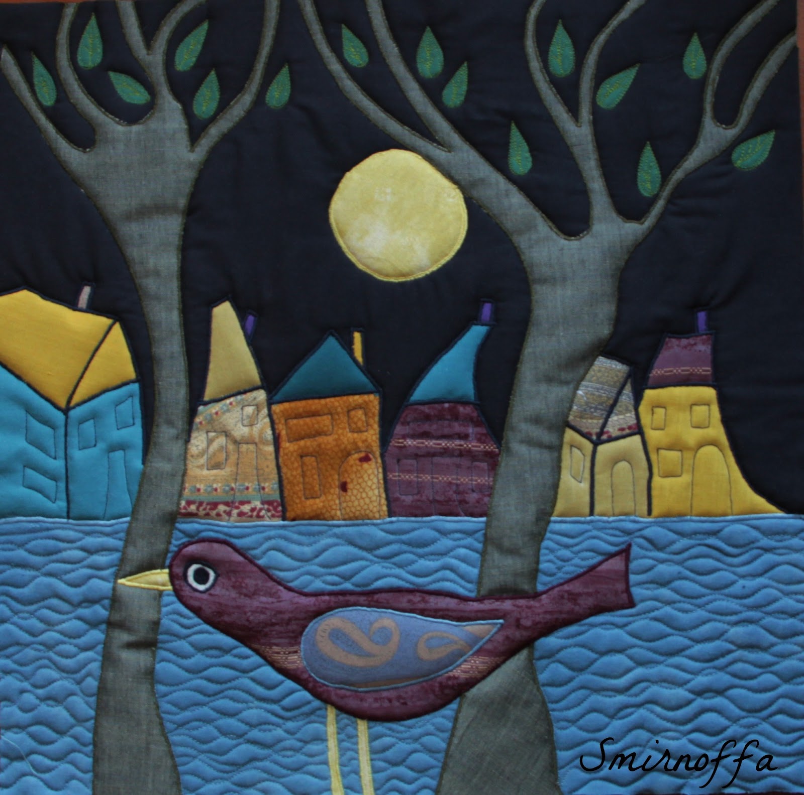 Меня поначалу картинка не впечатлила. Но когда я начала подбирать ткани, процесс так захватил, "что сия пучина поглотила ея в один момент". Очень понравилась мне эта ночь... Точно не последняя будет...