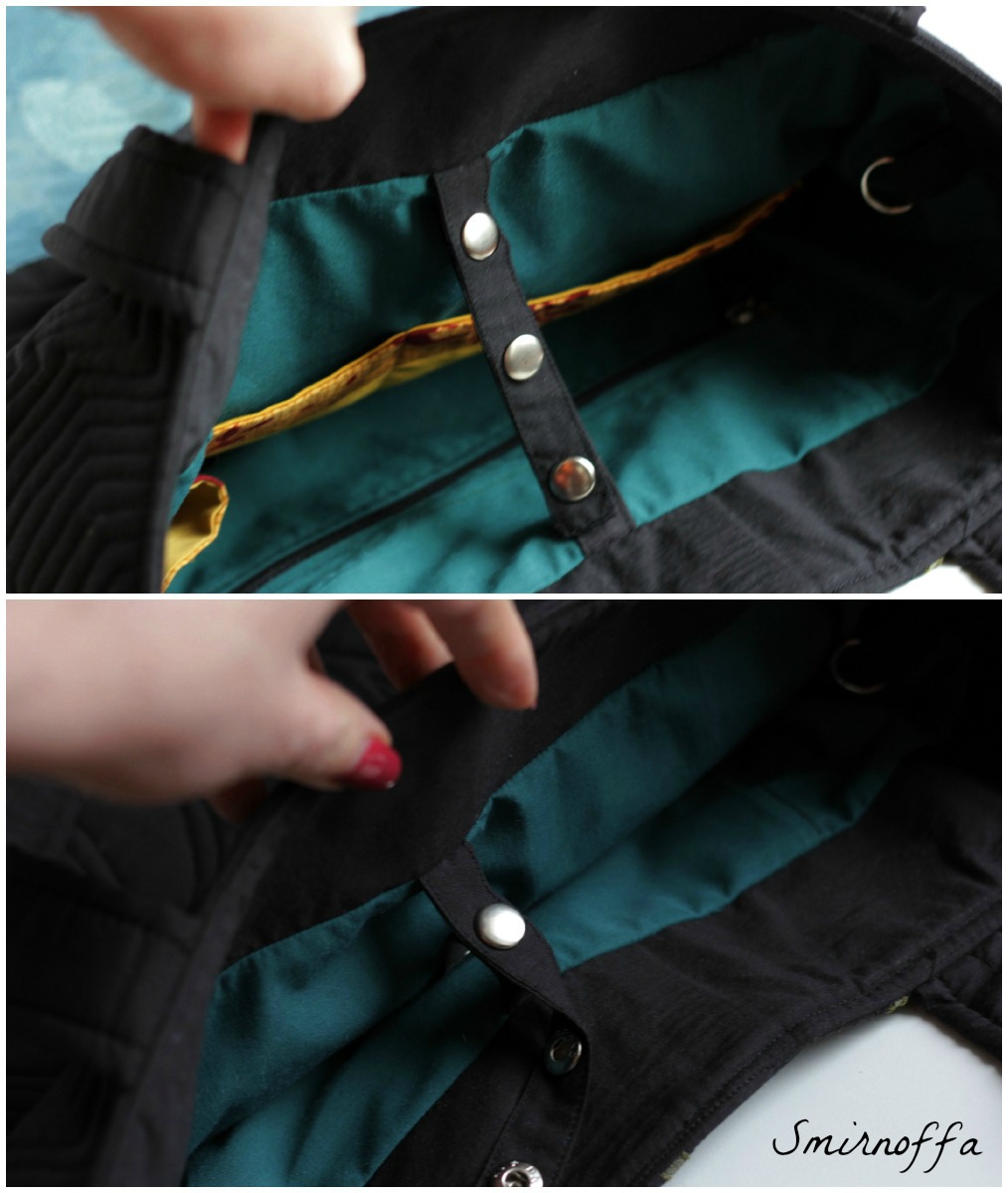 А еще у сумки есть типазастежка, по функционалу - стабилизатор формы. Застегиваешь шлейки на кнопки, и сумка не расползется в бока.