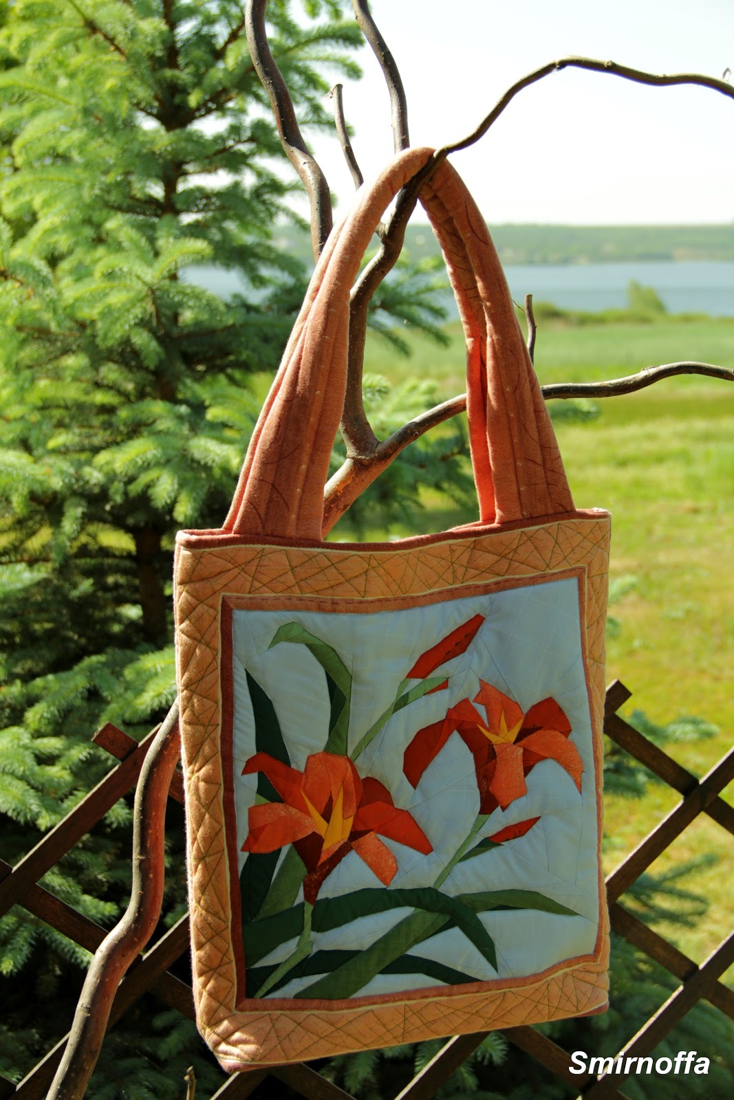 А сумки я раньше вот такие шила с этими размерами: с лилиями - моя (все прошлое лето протаскала, не расставаясь), а сашико дочь носит (в институт все необходимое влезает, в т.ч и ноутбук).