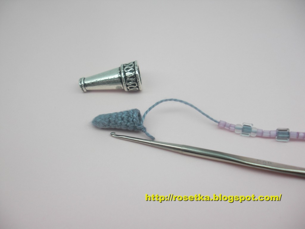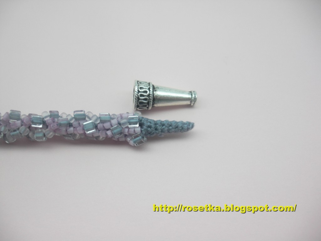 Не сразу я приспособилась закреплять колпачки на концах жгута, в итоге приноровилась делать вот как.