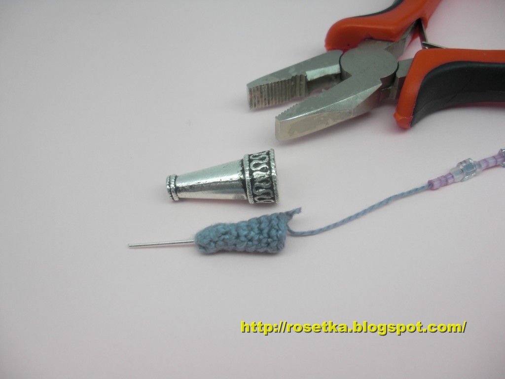 При помощи плоскогубцев продеваем её в центр нашей вставки.